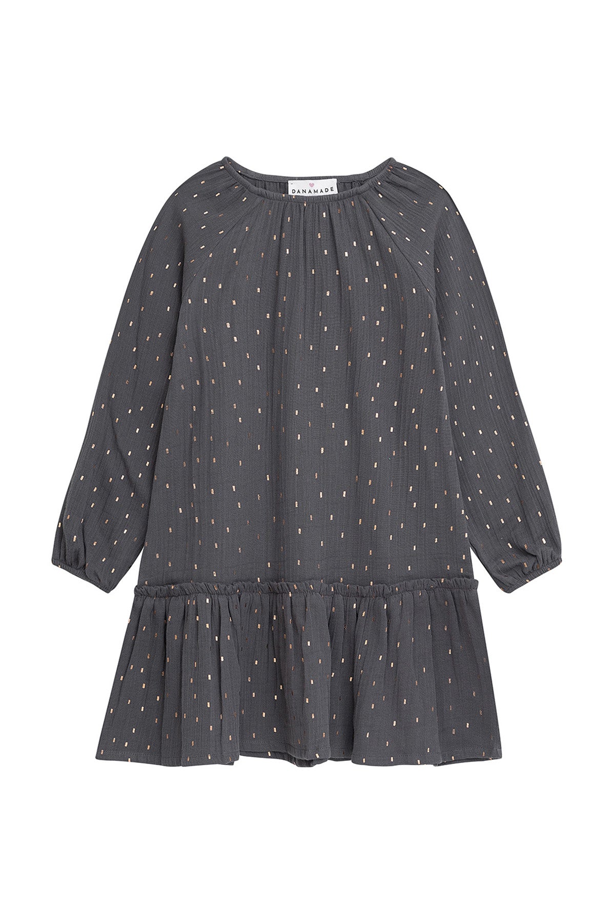 Danamade DEMM Mädchen Langarmkleid mit goldenen Glitzereffekten – Anthrazit