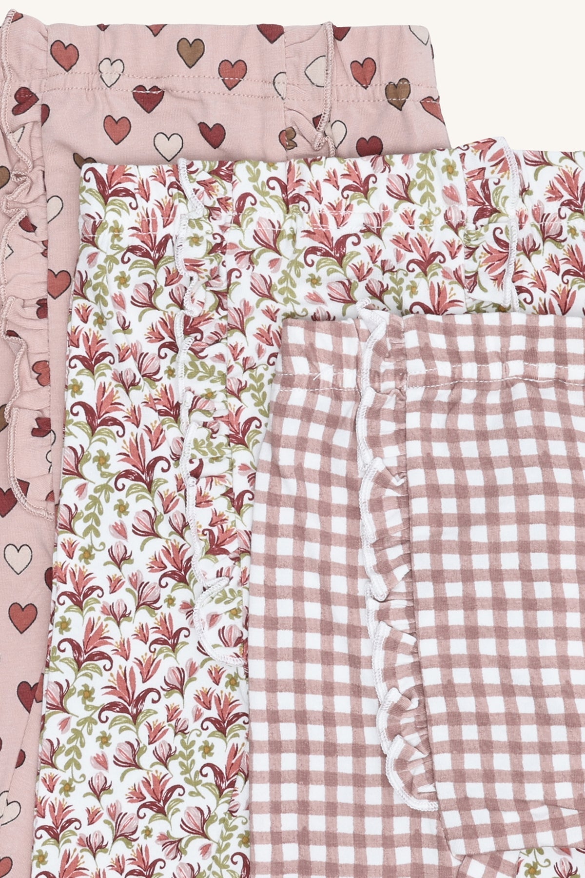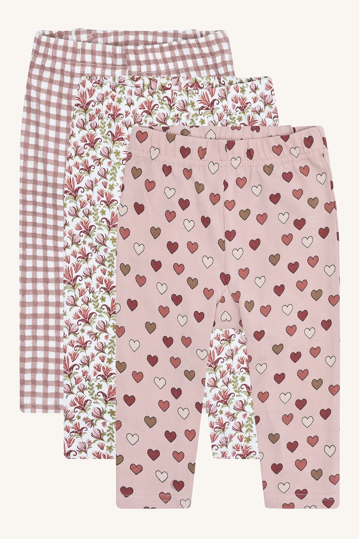 3-pack pants in Adobe Rose, crafted from 95% cotton and 5% elastane for comfort and stretch. Each pack includes three different designs, offering versatile and stylish options for everyday wear, perfect for active and playful children.