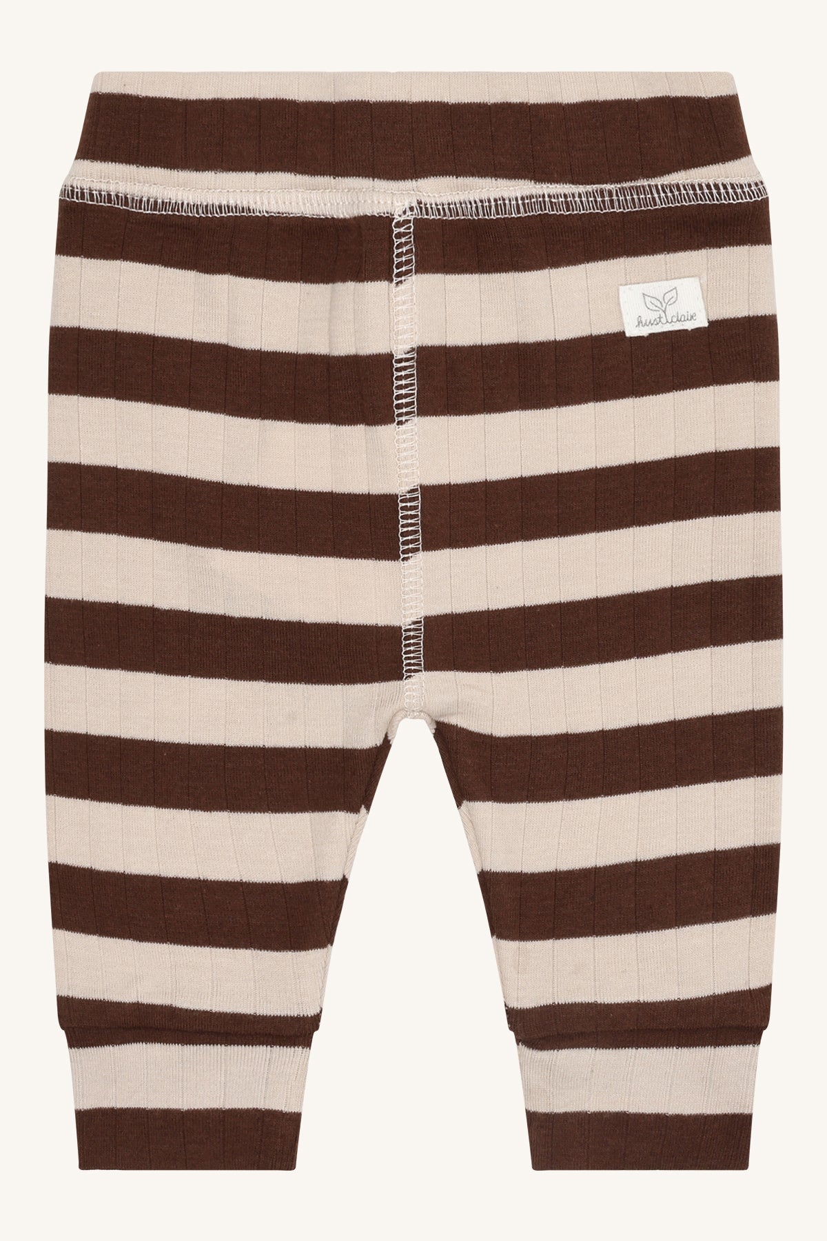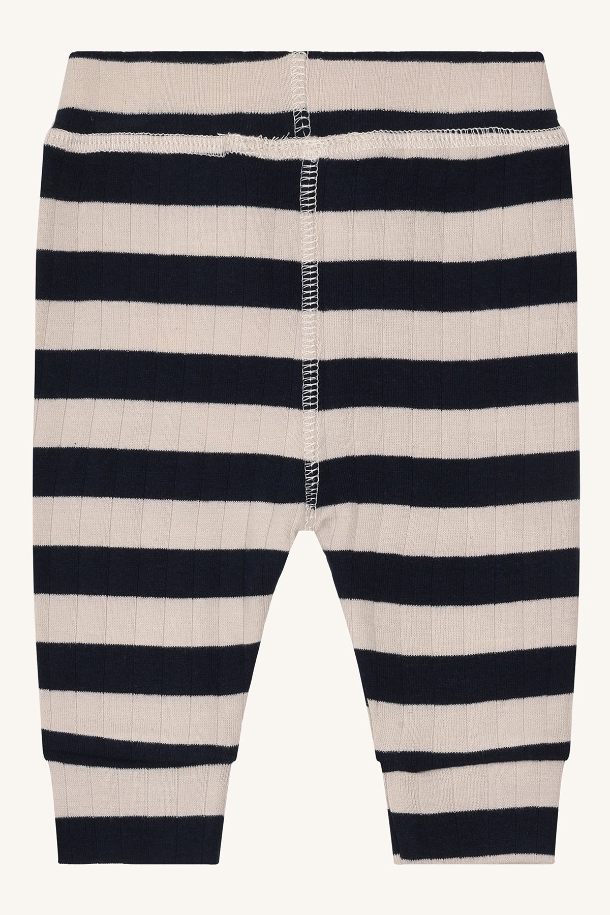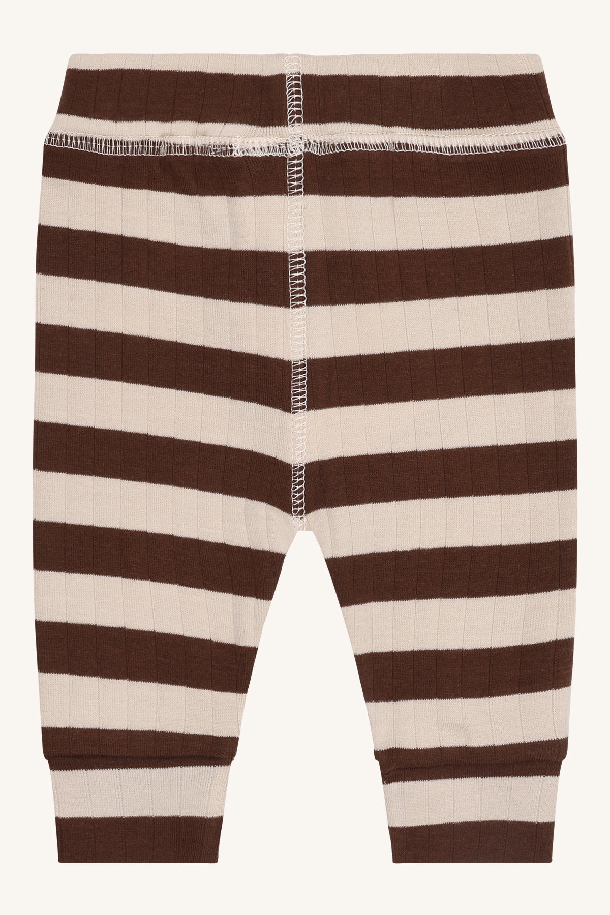 GOTS-certified leggings in Brown Stone or More Navy, made from 95% organic cotton and 5% elastane. Soft and stretchy with a wide rib texture and elasticated waist, offering comfort and flexibility for everyday wear.