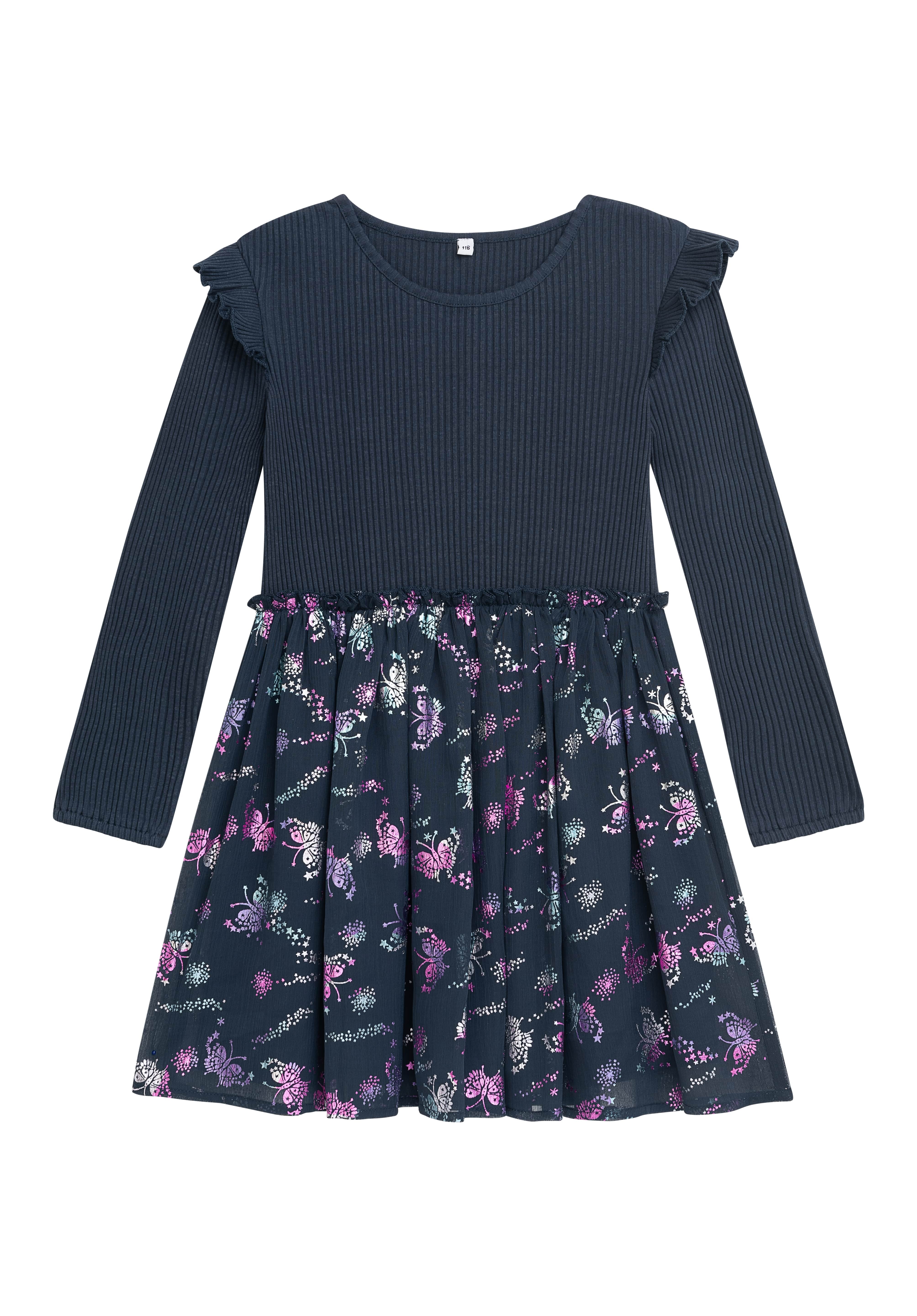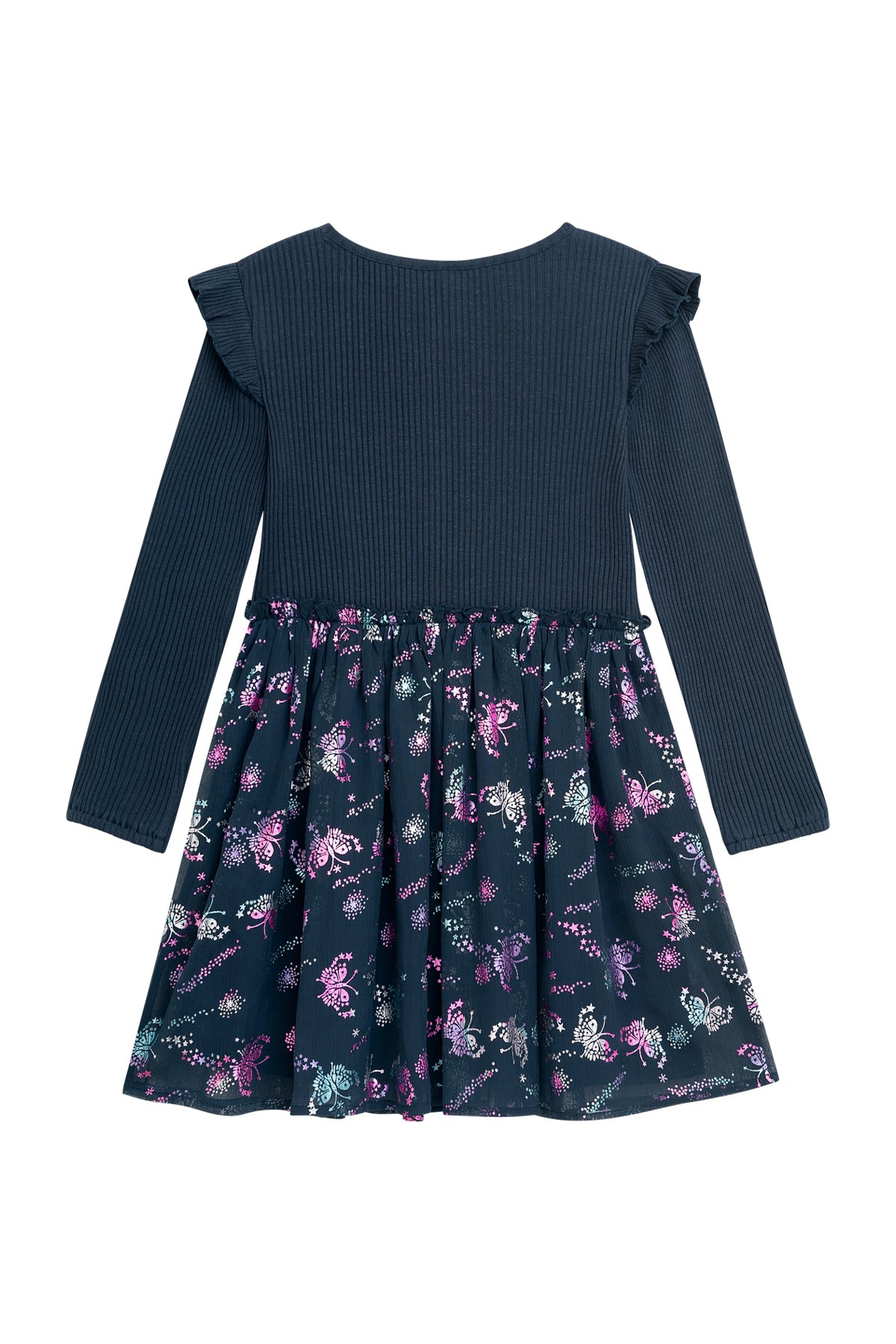 Danamade DMALEA Girls Long-Sleeves Butterfly Print Dress - Navy Blue