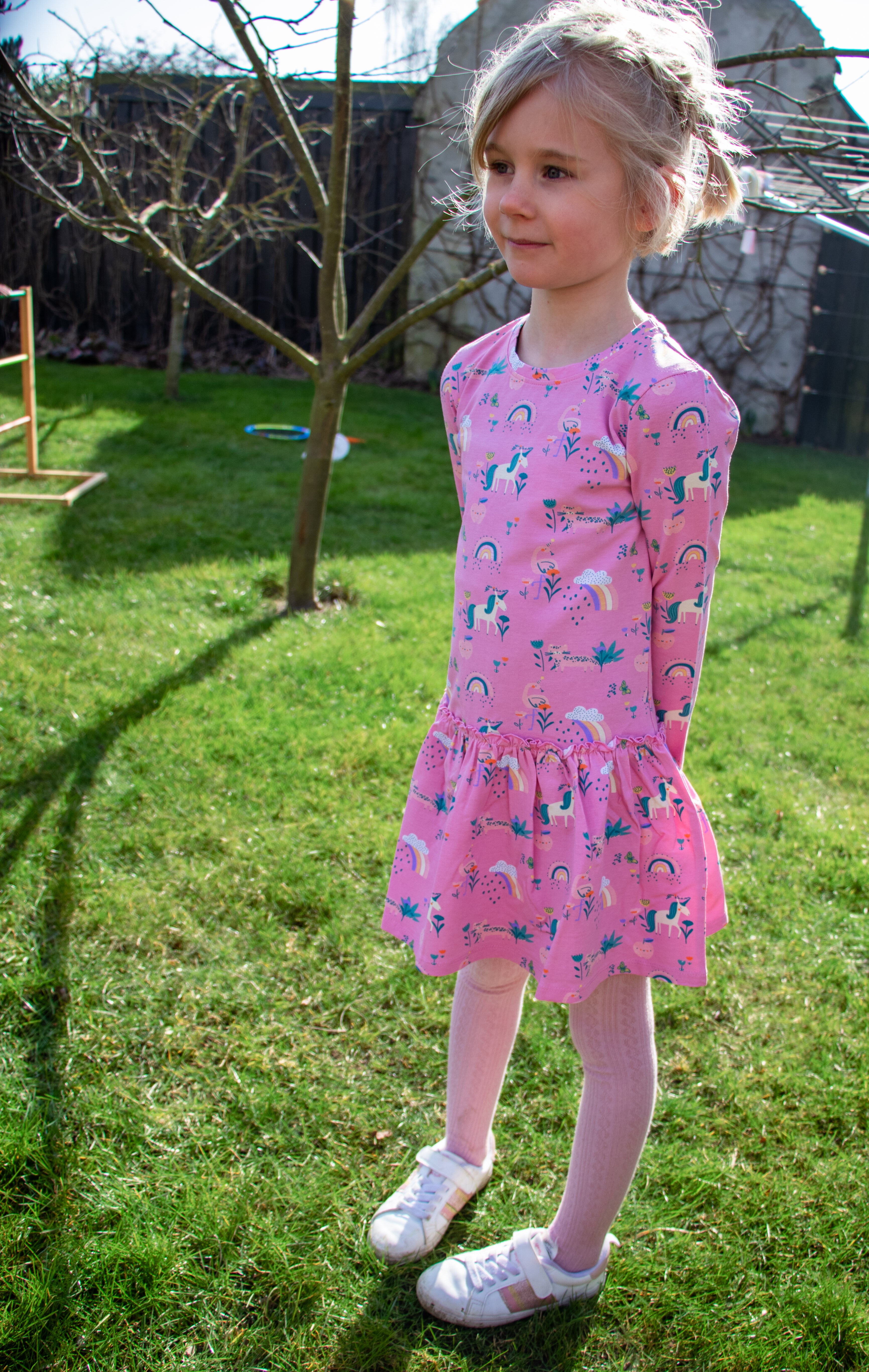 The soft, breathable cotton keeps your child comfortable, while the charming design makes it perfect for everyday wear or special occasions. 🌸🦄🌈