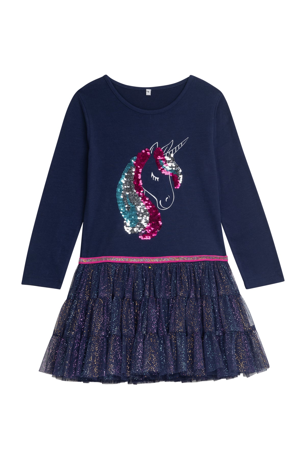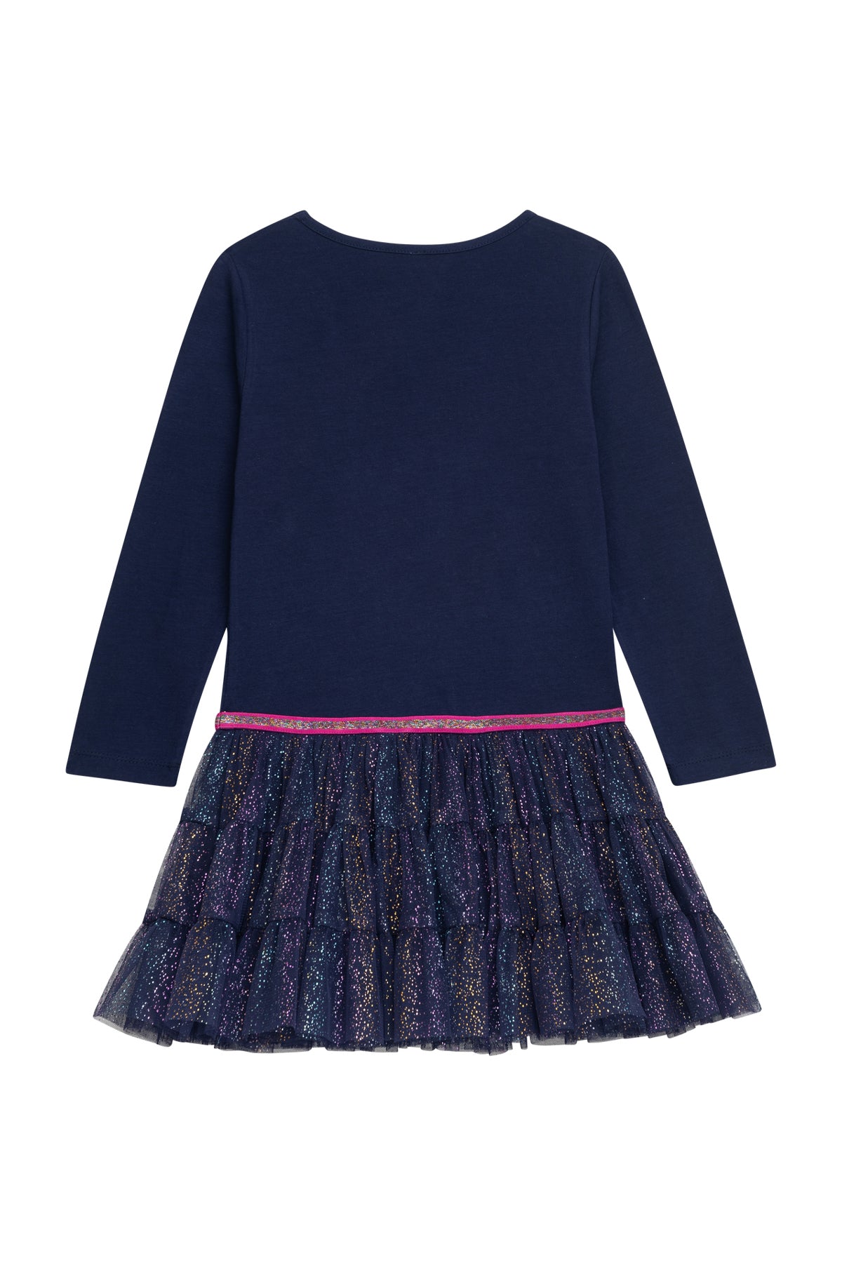 Danamade DLOTTA Girls Long-Sleeves Sparkling Unicorn Tulle Dress - Navy Blue