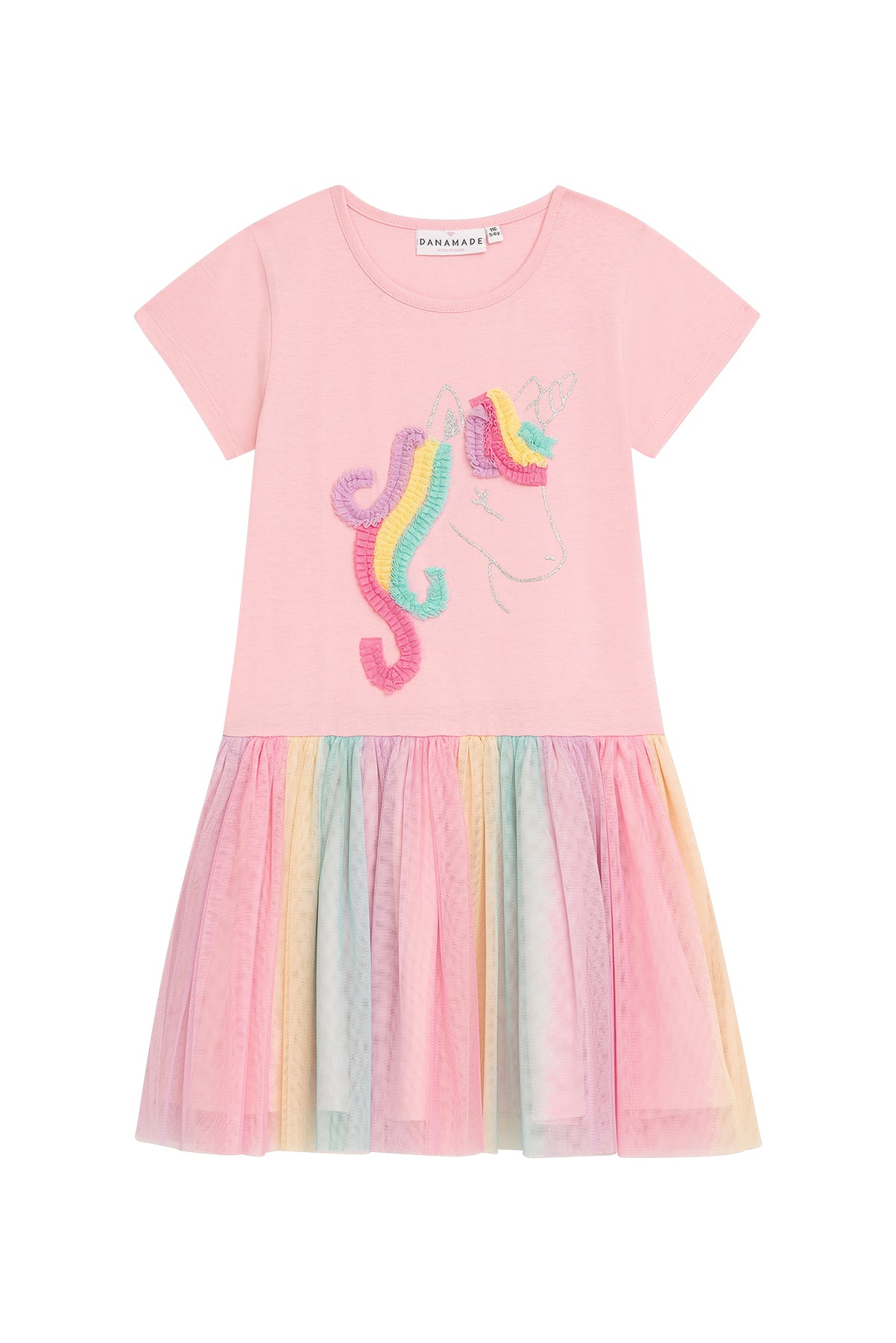 Danamade DMALVA Girls Short Sleeves Unicorn Design with Rainbow Tutu Dress - Rose