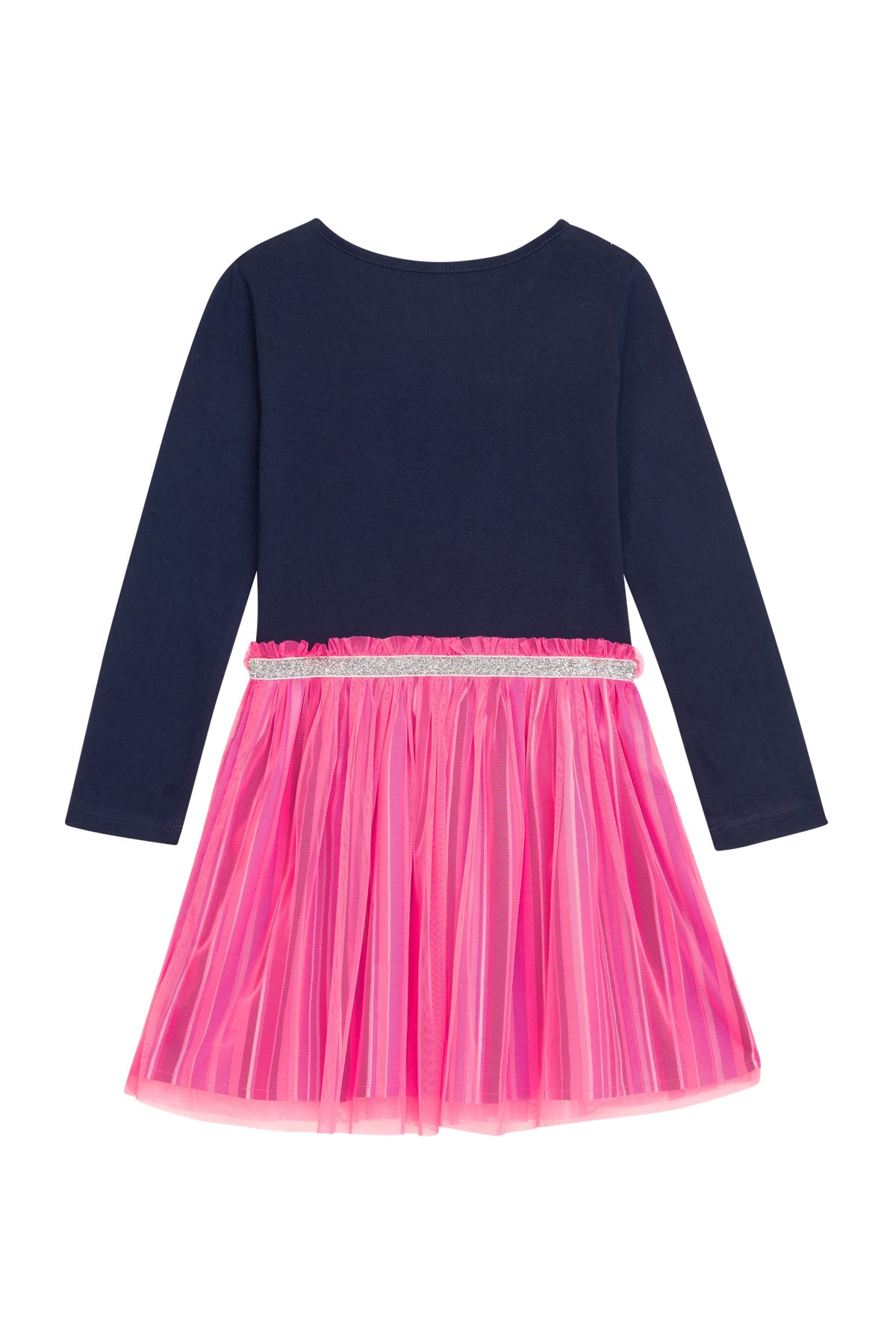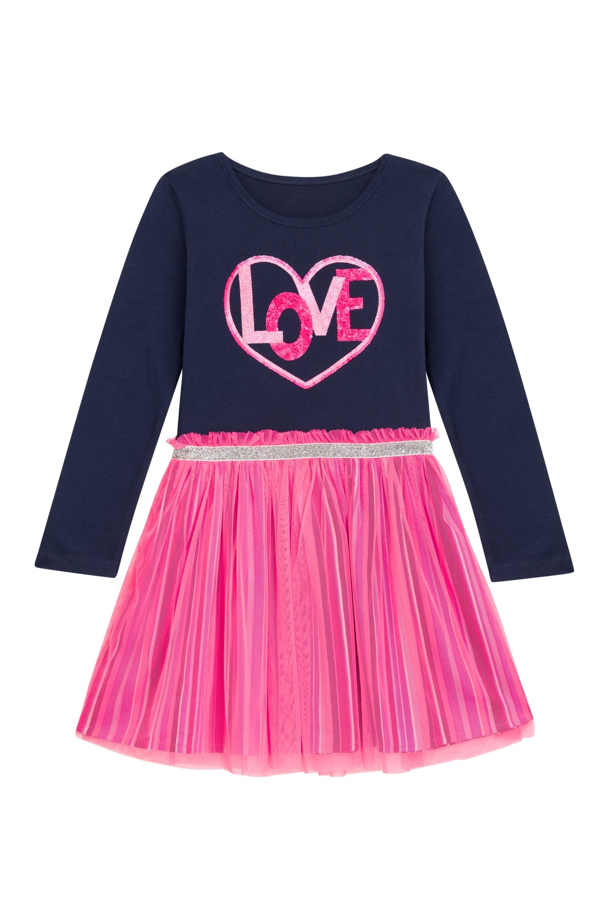 Danamade DOLIVIA Girls Long-Sleeves Love Neon Pink Tulle Dress - Navy Blue