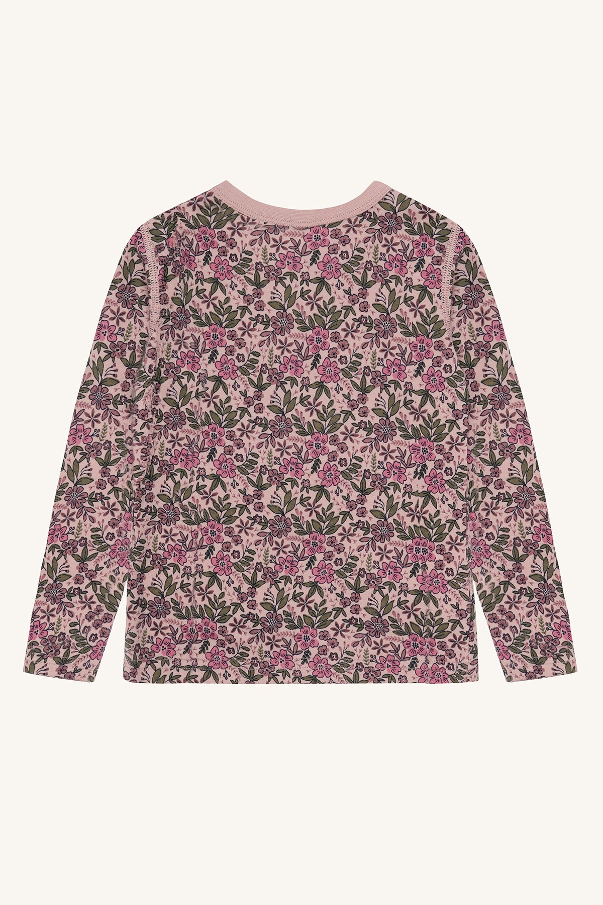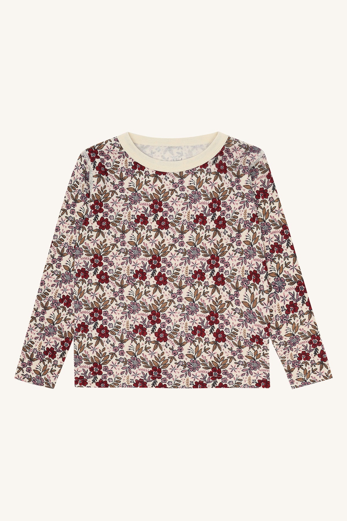 Hust and Claire Long-Sleeved T-Shirt HCAbba Floral Wool Bamboo Blend - Adobe Rose Off White