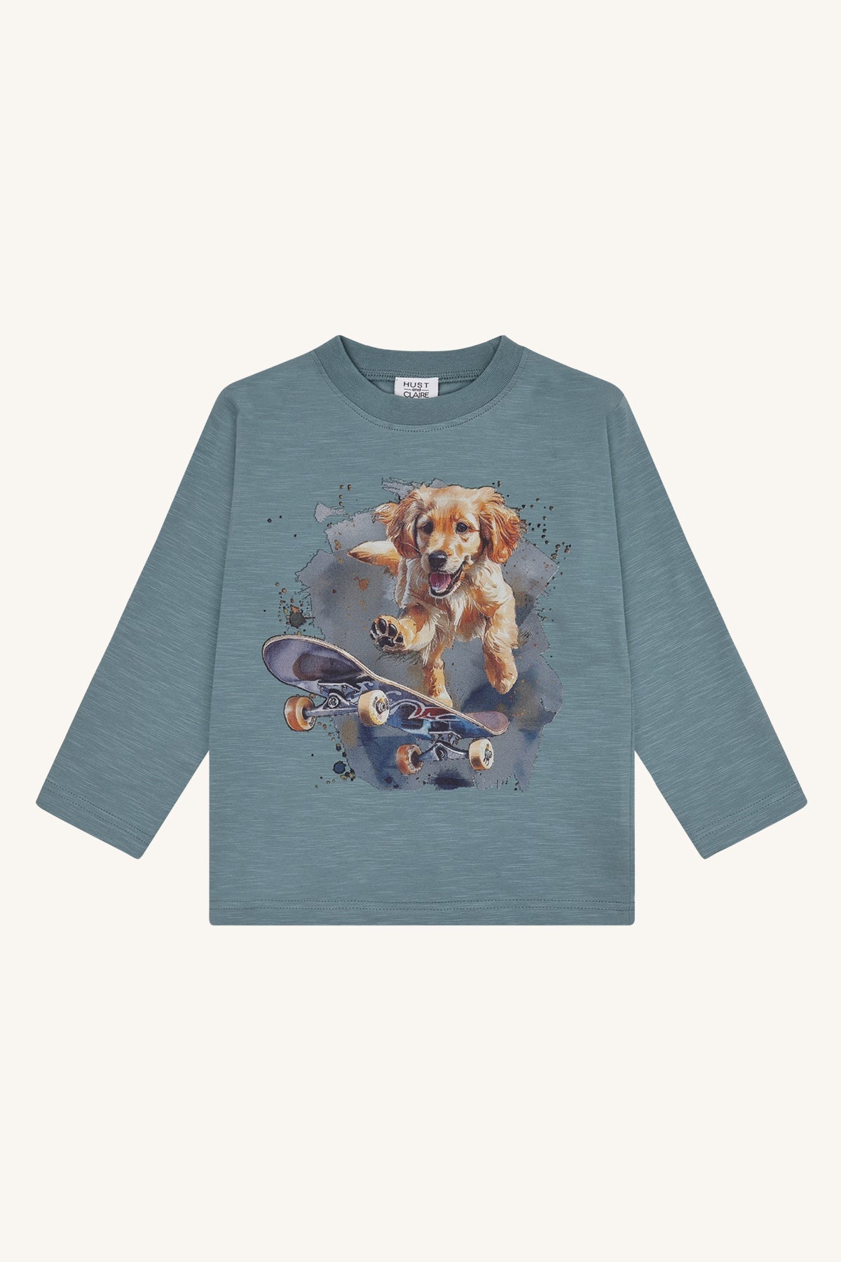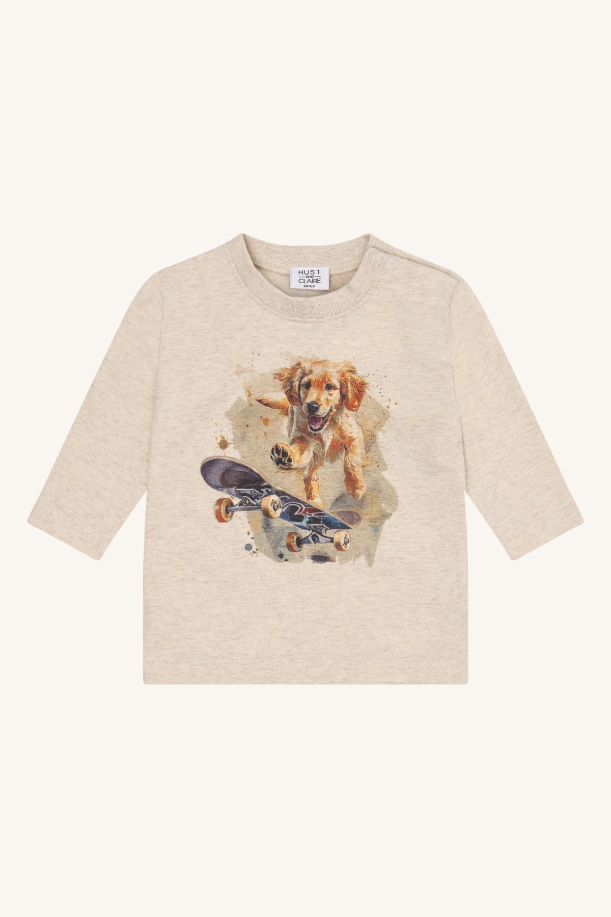 Hust and Claire Long-Sleeved T-Shirt HCAnton Skater Dog Cotton Blend - Wheat Melange