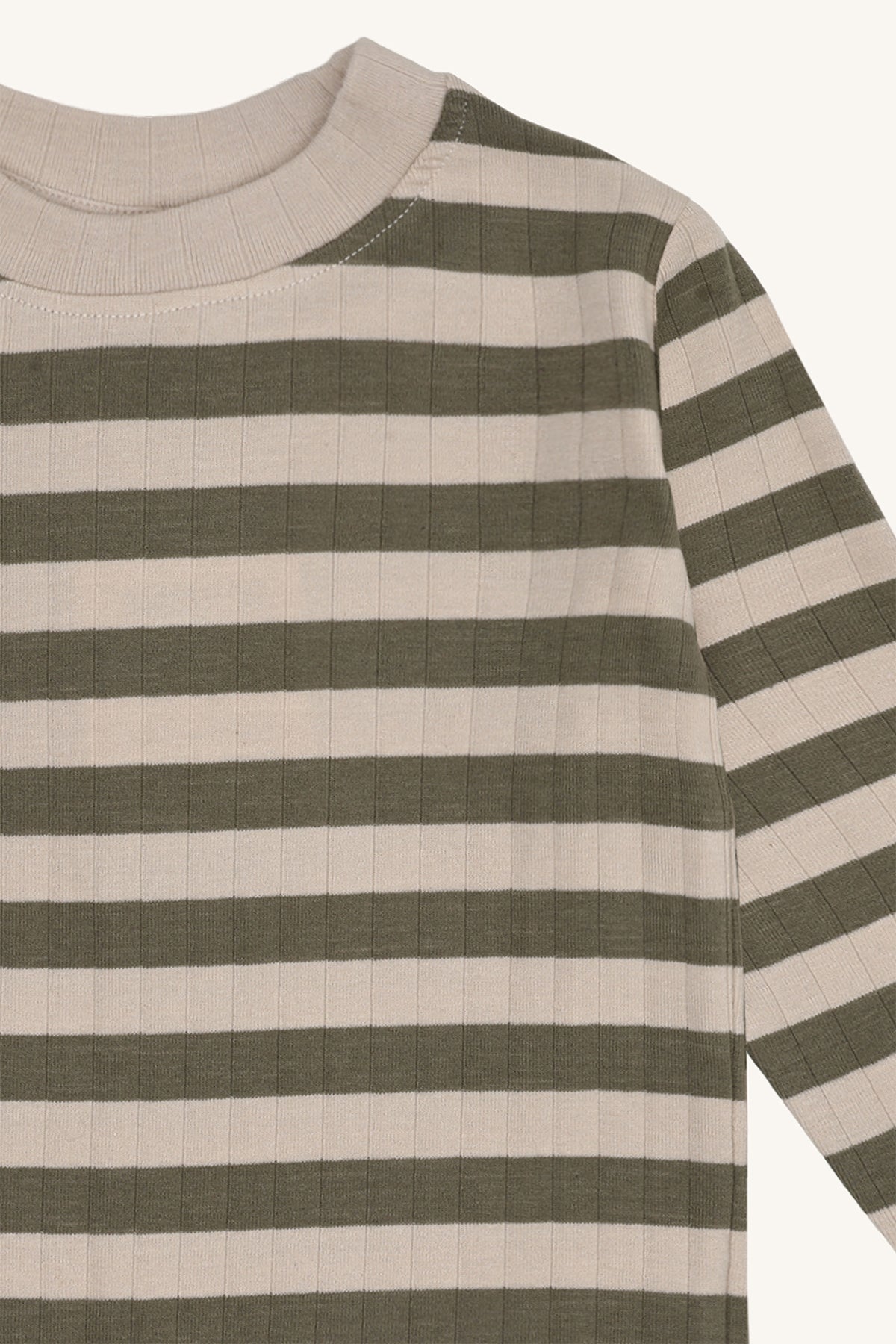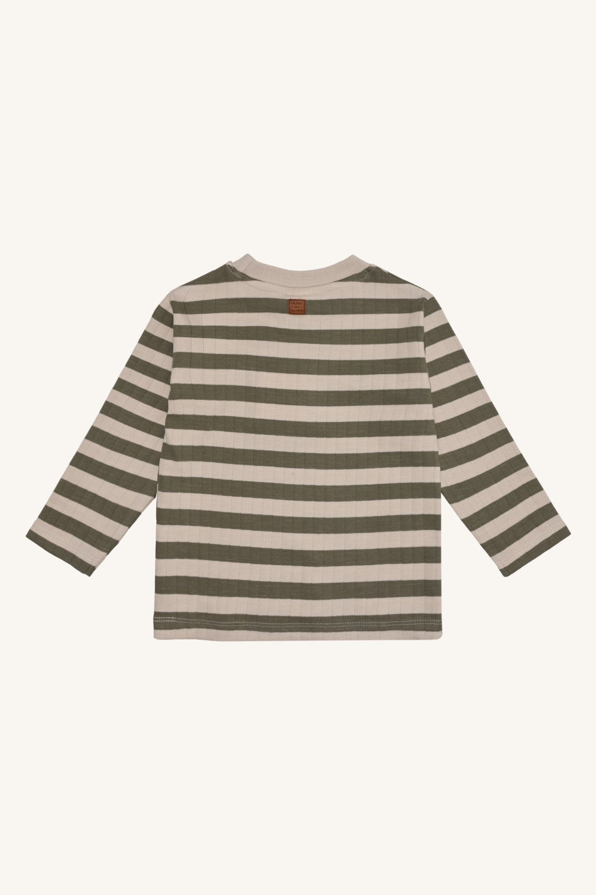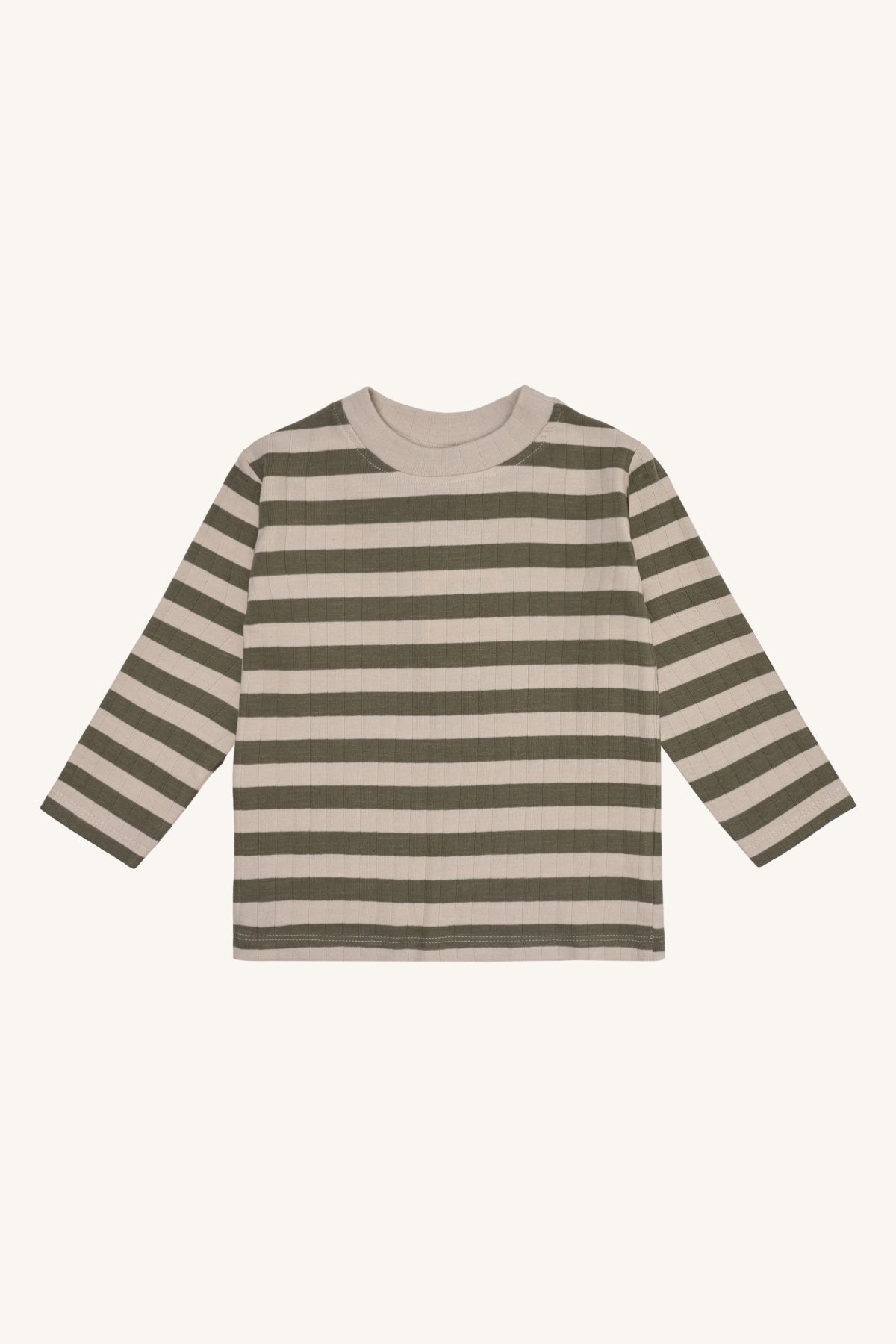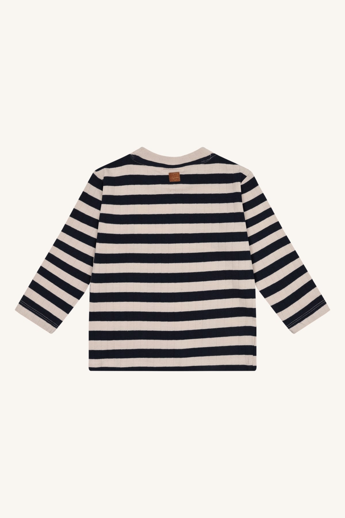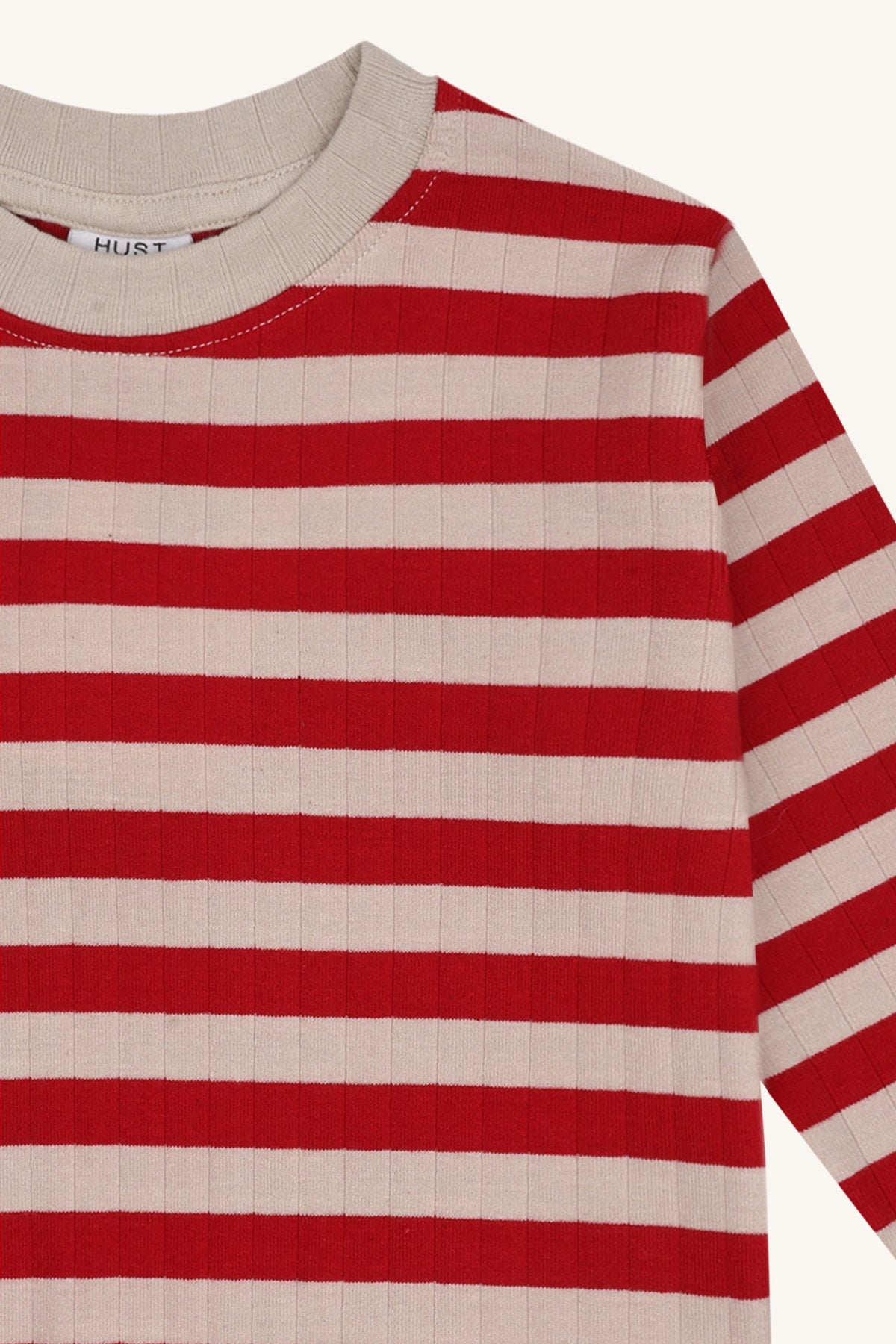 Long-sleeved T-shirt in soft organic cotton with a wide rib structure and classic stripes. Made of 95% Cotton, 5% Elastane. GOTS-certified for sustainable fashion. Available in Warm Red, More Navy, and Turtle.