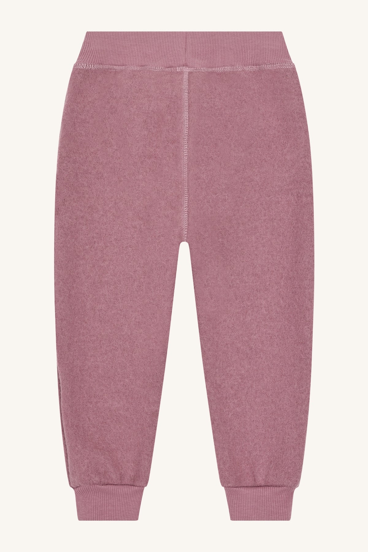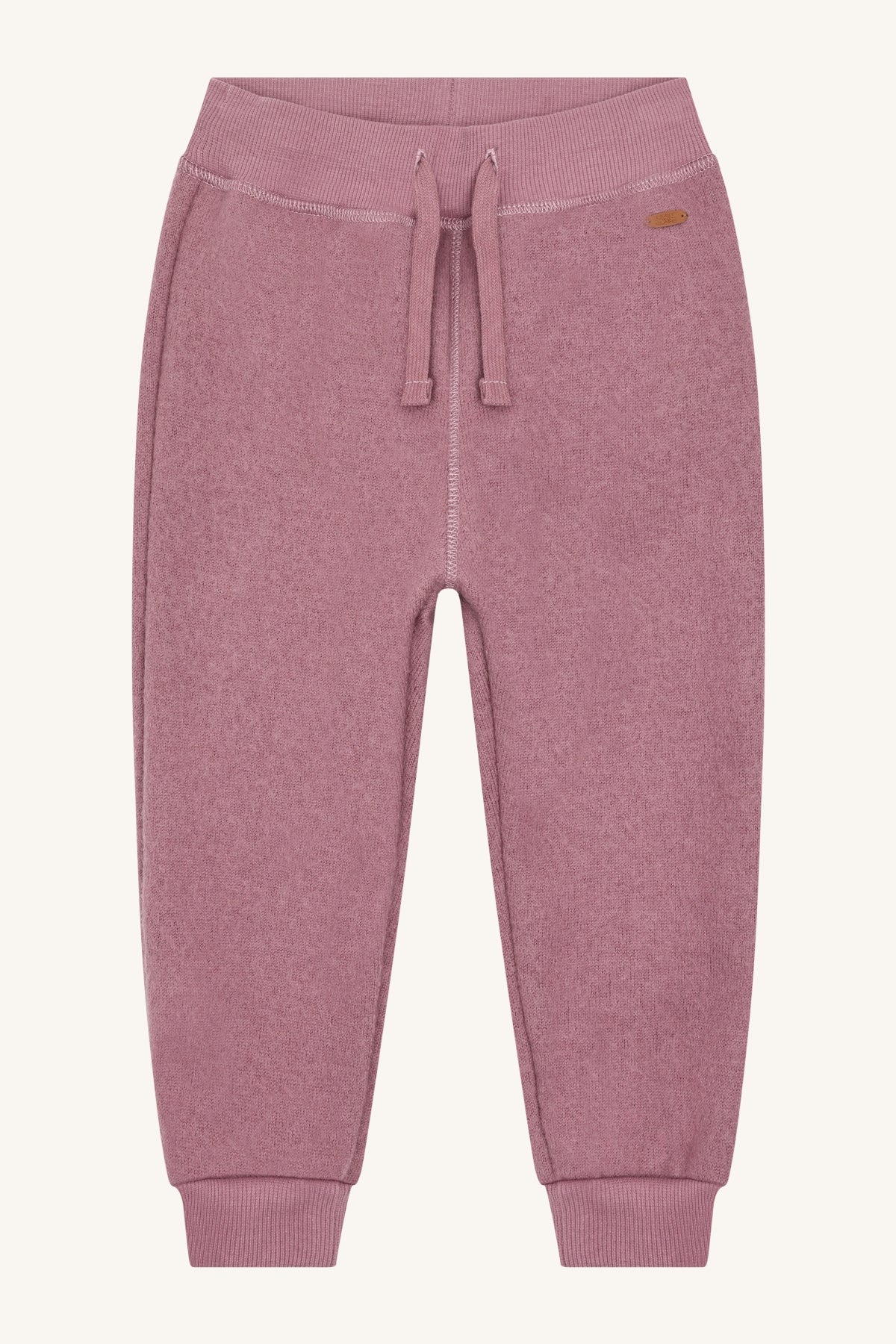 Trousers in soft, warm boiled wool. When the wool is boiled, it becomes dense and water-repellent and can therefore be used instead of thermal trousers. The joggers have a baggy fit and elasticated drawstring waistband. This product is made in the EU.