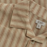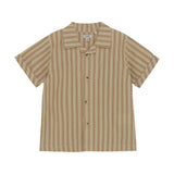This striped short-sleeved shirt is made from soft, organic woven yarn dyed cotton for comfort and durability. Featuring front buttons for easy dressing, this GOTS-certified shirt combines style with practicality for everyday wear.