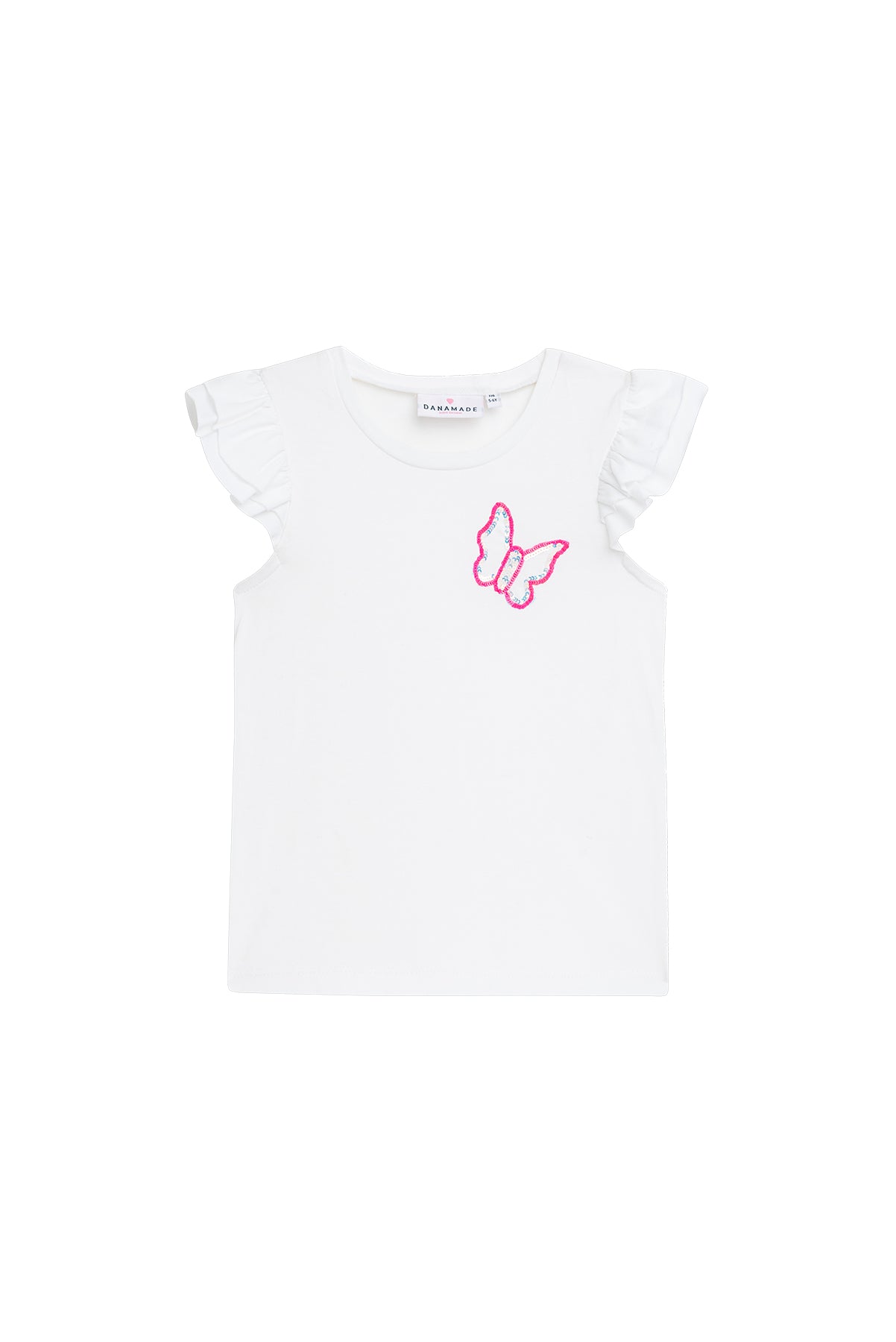 Danamade DDAGNY Girls Short-Sleeves Pink & Blue Sequin Butterfly Shirt - White