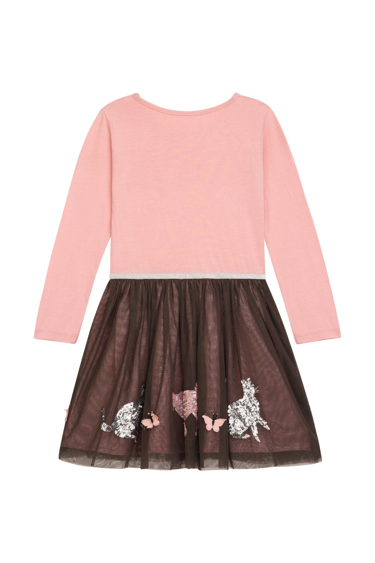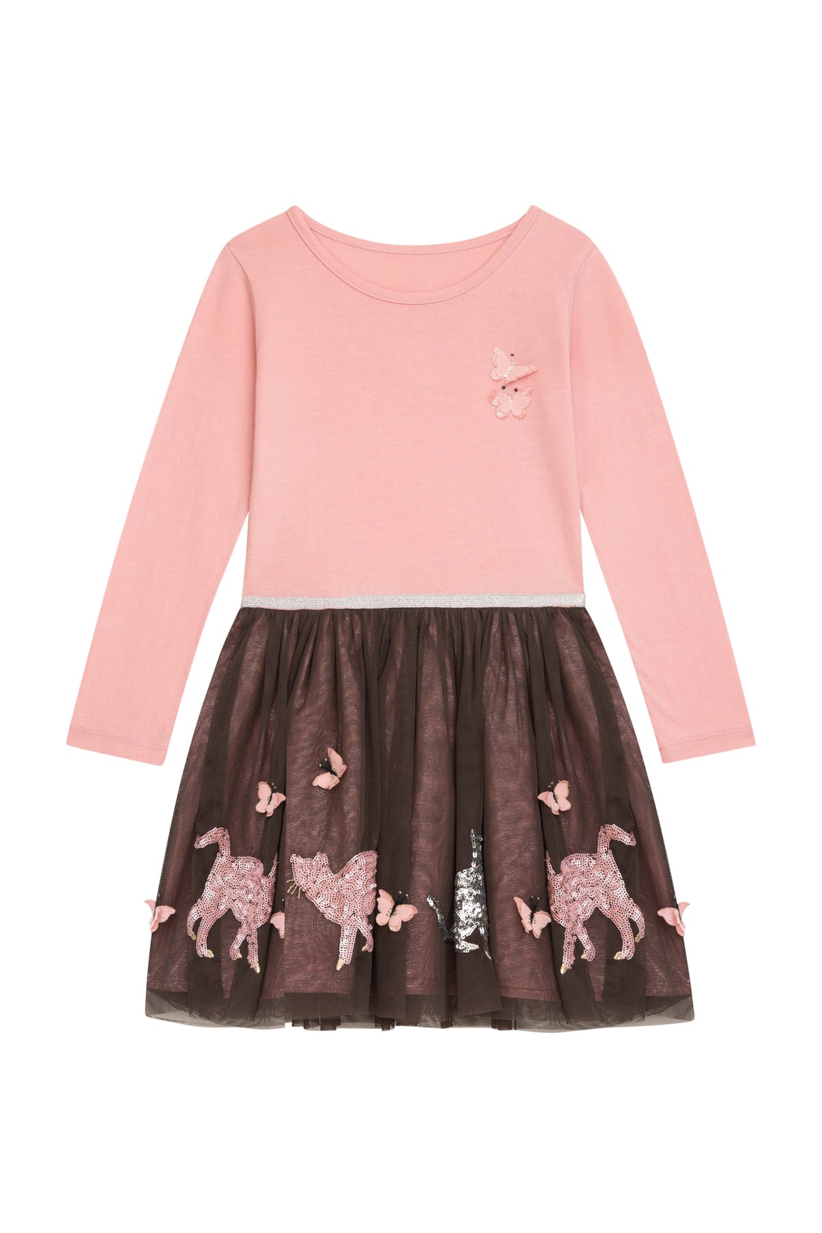 Danamade DHAILEY Girls Long-Sleeves Sequined Cat and Butterfly Tulle Dress - Dusty Rose