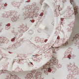 FIXONI long-sleeved bodysuit in Sand Eggnog features a lovely all-over ladybug and floral print. Made from 95% cotton and 5% elastane, it offers a soft and stretchy fit. Snap buttons at the shoulder and between the legs ensure easy dressing. GOTS and OEKO-TEX® certified.